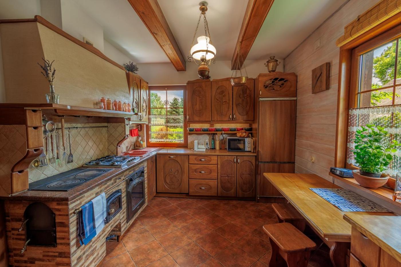 Domek z 5 sypialniami. The fireplace is a top feature of this holiday home. Guests will find a refrigerator, a dishwasher and an oven in the kitchen. The holiday home also includes a barbecue. The spacious holiday home features a washing machine, a coffee machine, a dining area as well as a terrace with garden views. The unit has 9 beds. Dom wakacyjny - 11 osobowy. Powierzchnia pokoju ok.: 200 mkw.