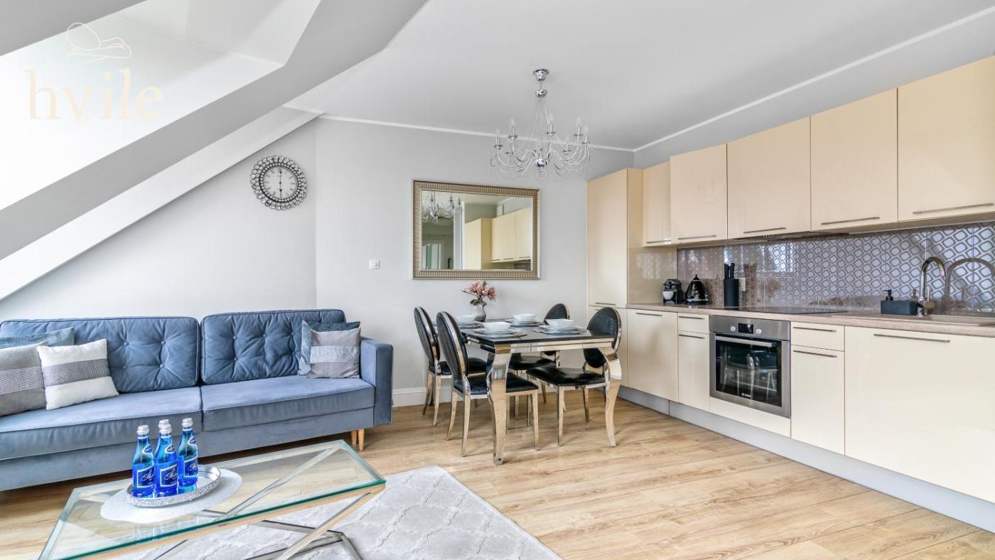 Oferta apartamentu obejmuje sypialnię (1), salon, kuchnię z pełnym wyposażeniem, w tym lodówką i ekspresem do kawy, a także łazienkę (1) z prysznicem oraz suszarką do włosów. W apartamencie zapewniono ręczniki i pościel.