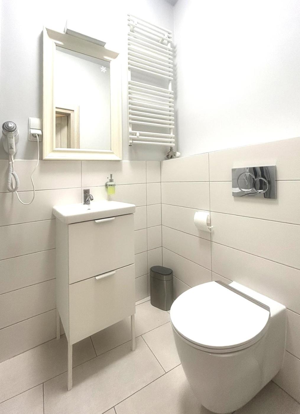 Apartament z tarasem. Boasting a private entrance, this air-conditioned apartment features 1 living room, 2 separate bedrooms and 1 bathroom with a shower and a hairdryer. Meals can be prepared in the well-fitted kitchen, which has a stovetop, a refrigerator, a dishwasher and kitchenware. Featuring a terrace with city views, this apartment also features soundproof walls and a flat-screen TV with streaming services. The unit has 2 beds. Apartament - 5 osobowy. Powierzchnia pokoju ok.: 45 mkw.