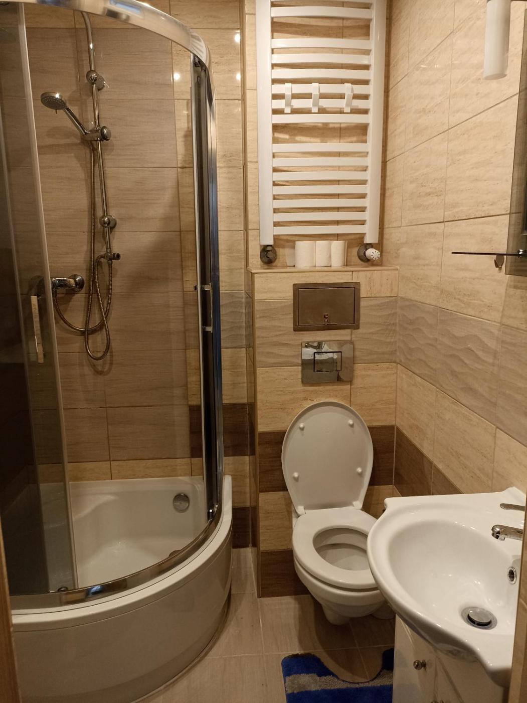 Apartament z 1 sypialnią. This apartment consists of 1 bedroom, a kitchen and 1 bathroom with a shower and a hairdryer. The well-fitted kitchen features a stovetop, a refrigerator, kitchenware and an oven. Among the room amenities are a wardrobe, an electric kettle and heating as well as a quiet street view. The unit offers 2 beds. Apartament - 2 osobowy. Powierzchnia pokoju ok.: 30 mkw.
