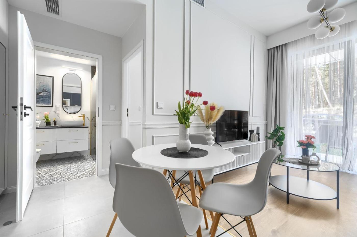 Apartament z 1 sypialnią. Jest to klimatyzowany apartament z prywatnym wejściem, który mieści salon, oddzielną sypialnię oraz łazienkę z wanną lub prysznicem i suszarką do włosów. Goście mogą przyrządzać posiłki w kuchni z przyborami kuchennymi, płytą kuchenną, lodówką i zmywarką do naczyń. Apartament dysponuje balkonem. Udogodnienia obejmują pralkę, telewizor z płaskim ekranem oraz zestaw do parzenia kawy i herbaty. W tej opcji zakwaterowania dostępne są 2 łóżka. Apartament - 4 osobowy. Powierzchnia pokoju ok.: 40 mkw. ;